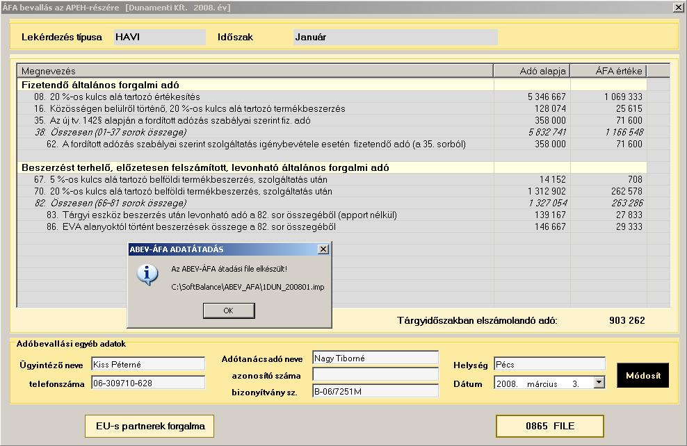 számlákról - közvetlenül a könyvelő szoftverből (XX65M ÁFA